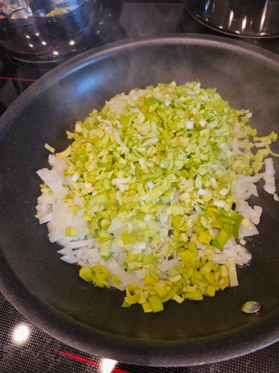 You can play with the ratio of the leek and onion, but be sure to use both for the richness of flavors.