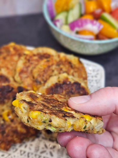 This recipe is one of those happy experiments that turned into a regular favorite in my kitchen. It all started when I was trying to create a lighter, more flavorful version of fritters that my son could enjoy as a main course, since he always loved corn. I ended up with these crispy on the outside, soft on the inside, savory bites that for a long time now have been a go-to in my home. The combination of grated tofu, zucchini, and corn gives them a wonderful texture and nutritional value, while the sautéed onions and spices bring a deep, savory flavor. They’re incredibly easy to make, especially if you have a blender or food processor, and they’re absolutely delicious when served fresh and warm. Perfect for any time you want something comforting yet light!