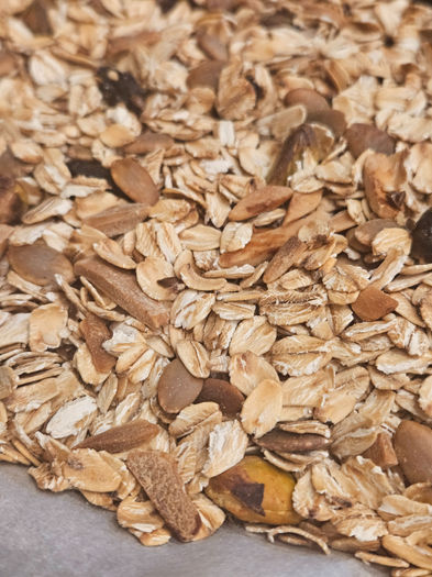 Spread all the seeds and nuts evenly across the pan on top of the oats. Bake for 10 minutes, take the pan out - mix gently, and place the pan back in the oven for 10-15 more minutes or until lightly golden.