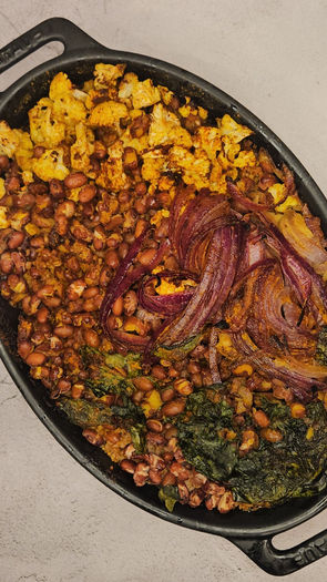 Add beans and veggies: Scatter the beans, spinach, sliced red onion, and cauliflower on top of the bulgur.