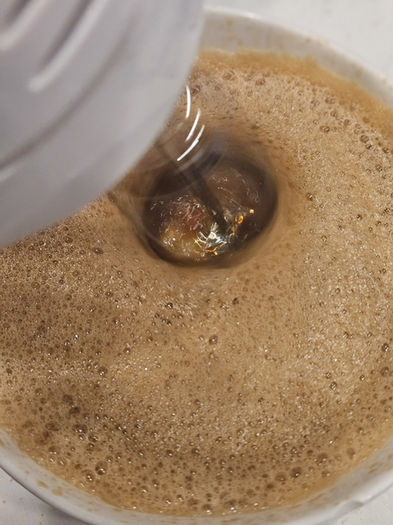 Brew 2 short shots of hot espresso to a large cup.